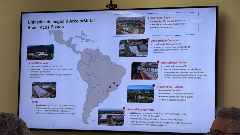Pela anfitriã, a ArcelorMittal, participaram o representante institucional Luiz Abdala e a diretora Sandra Brito, que conduziram a visita técnica e apresentaram os principais projetos em andamento na unidade.