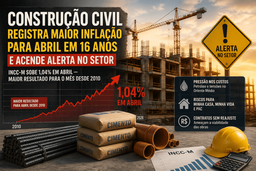 A construção civil brasileira começou o segundo trimestre de 2026 com um sinal preocupante. O INCC-M (Índice Nacional de Custo da Construção – Mercado), apurado pela Fundação Getulio Vargas (FGV), avançou 1,04% em abril — o maior resultado para o mês em 16 anos, desde 2010. O número surpreendeu negativamente entidades do setor e reacendeu o debate sobre a sustentabilidade dos grandes programas habitacionais do governo federal.