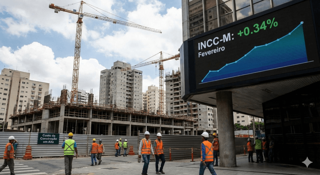 O Índice Nacional de Custo da Construção – M (INCC-M)[1] registrou alta de 0,34% em fevereiro, abaixo da taxa de variação de 0,63% observada no mês anterior. Com este resultado, a taxa acumulada em 12 meses pelo índice atingiu 5,83%, representando uma desaceleração em relação a fevereiro de 2025, quando o índice acumulava alta de 7,18% em 12 meses.