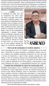 Palavras do Presidente(Preços Inexequíveis em Obras Públicas: Um Desafio Permanente para a Construção Civil) 30/10/2025 Nenhum comentário Leia mais